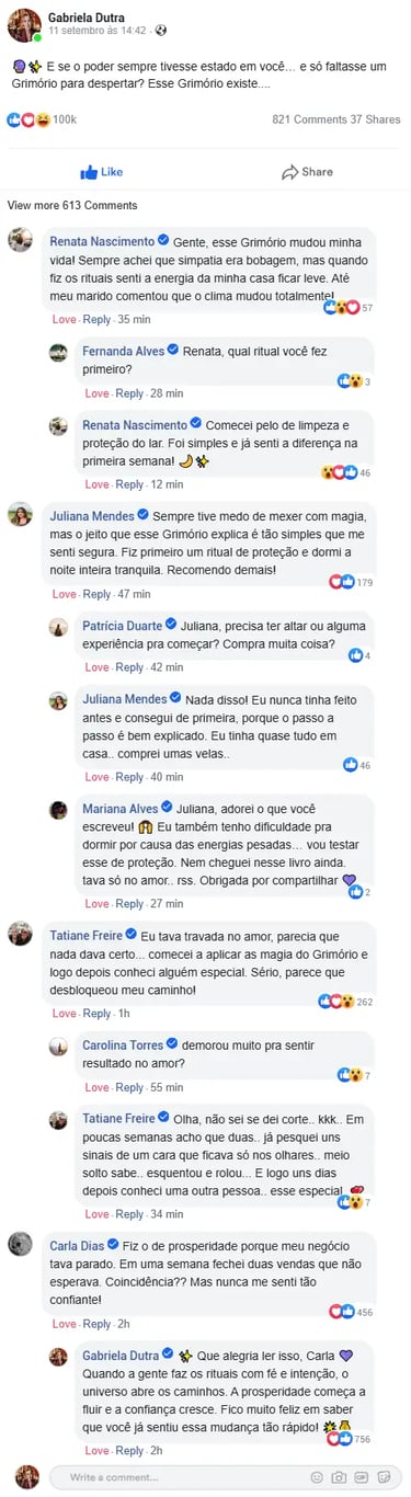 O Grimório das Bruxas já ajudou milhares de pessoas, desbloqueando caminhos para conquistas de amor, prosperidade e proteção.